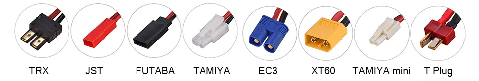 Dependiendo de tu modelo, encontrarás conectores T-Dean, XT-60, XT-90, XT30, EC3, EC5, Traxxas, TAMIYA u otros. Siempre revisa la compatibilidad con tu variador (ESC).