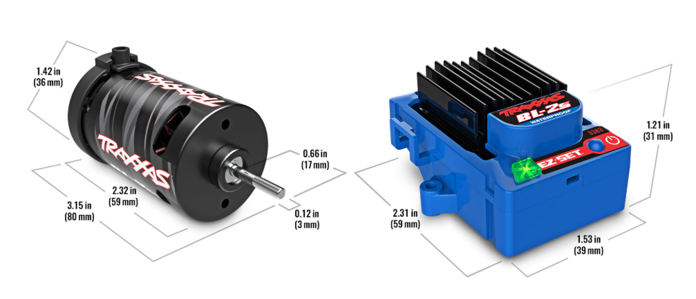 Este modelo lleva motor y variador Brushless BL-2 de Traxxas para utilizarlo máximo con baterías de 2s (7.4v). Con el coche ya viene una incluida junto a su cargador USB Traxxas:
