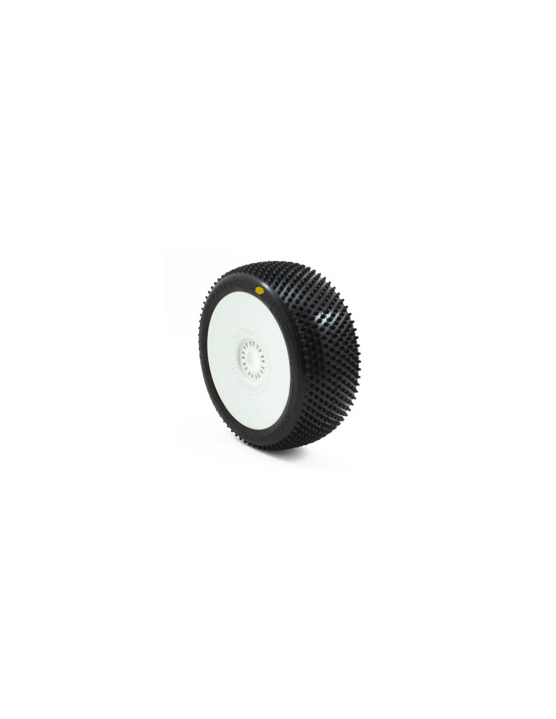 La Grasshopper ofrece un rendimiento máximo en superficies de moqueta, con una disposición uniforme de tacos largos por toda la superficie del neumático. Esta configuración proporciona un agarre lateral muy alto y una tracción potente, lo que la hace ideal para el eje trasero o para configuraciones que busquen máximo agarre y una dirección más agresiva.