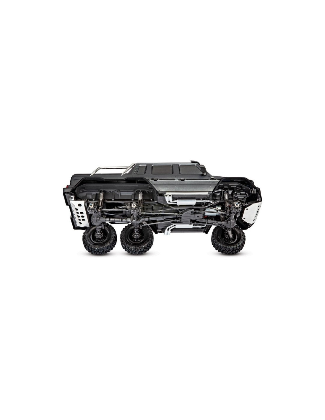 El TRAXXAS TRX6 es la versión del famoso TRX4 con un eje más: 6X6 con carrocería sin clips del Mercedes-Benz G 63 AMG con luces leds decorativas. Este modelo viene a falta de batería y cargador.