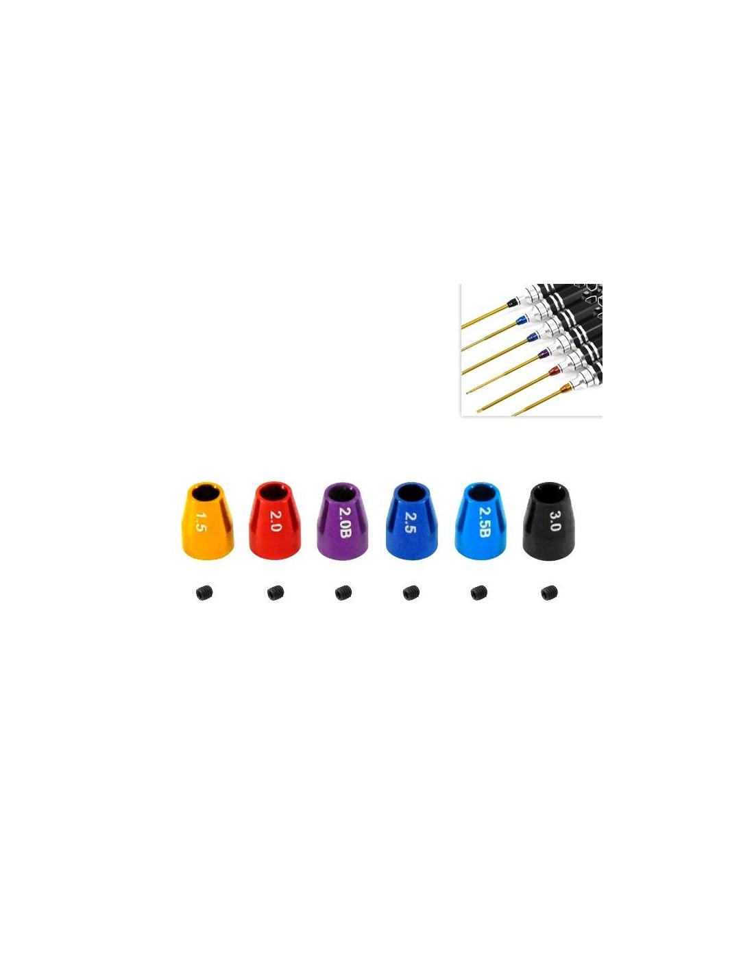 Parck de 6 marcadores en aluminio para acoplar en juego de llaves allen para indentificar las medidas.