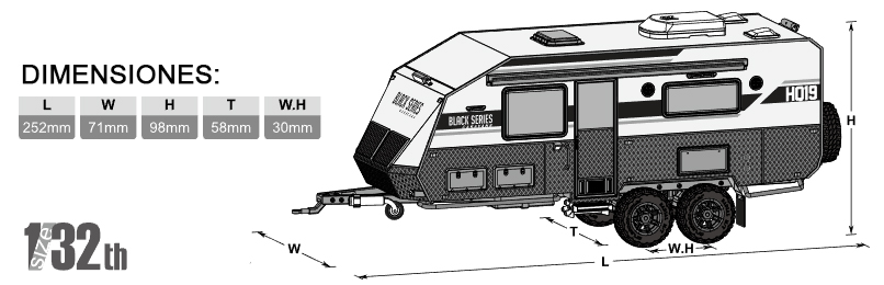 El kit de micro remolque o Caravana Orlandoo Hunter OH32N01 Black Series HQ19 a escala 1/32 es una réplica con licencia oficial del remolque todoterreno Black Series HQ19. Con un exterior muy detallado y una suspensión independiente en las 4 ruedas de gran realismo, este remolque es una réplica fiel del modelo 1:1, ¡a escala micro 1/32!
