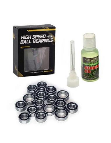 Los rodamientos de bolas RC siempre deben ser las primeras mejoras que realices, ya que reducen la fricción y la resistencia a la rodadura, lo que se traduce en una mayor velocidad y tiempos de funcionamiento más prolongados. Los rodamientos de bolas RC apenas requieren mantenimiento y duran mucho más que los bujes Oilite de serie.