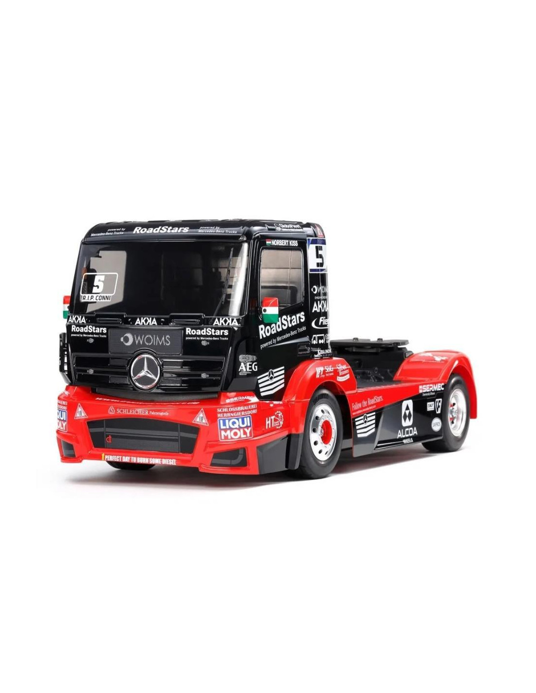 La línea Tamiya de modelos de camiones de carreras da la bienvenida a un recién llegado en la forma del Actros que corrió en el ETRC 2019, y que llevó al equipo al cuarto lugar en la año, con el veterano piloto húngaro Norbert Kiss sexto en la clasificación general de pilotos. El modelo se basa en el probado 4WD impulsado por eje del chasis TT-01 Tipo-E.