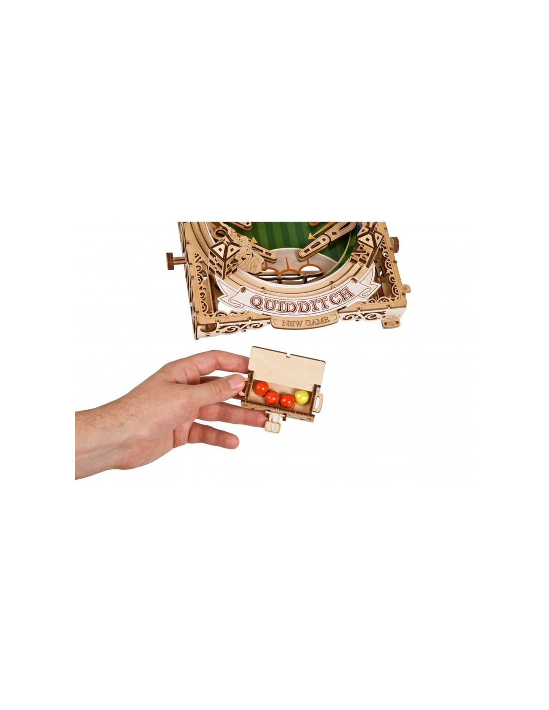 El amor por el detalle se nota en este juego Quidditch™ Flíper de Ugears y lo convierte en una maqueta imprescindible para Potterheads, modelistas y entusiastas del juego. Mire los pulsadores de los flípers en estilo Quaffle™, los rebotadores en el estilo de los bates de los Golpeadores, la franja decorativa alrededor del campo estampada con los logotipos de las casas de Hogwarts™, las ilustraciones en el panel trasero del marcador, la cajita de madera y el marcador recordando a los de la película "Harry Potter y la Piedra Filosofal", así como las figuritas grabadas con láser de Harry, Ron y los gemelos Weasley montados en sus escobas. Este juego flíper mecánico DIY de madera es un divertido juguete y a la vez una extraordinaria pieza de exposición, así como una nueva maqueta más en la colección Harry Potter de Ugears y el primer modelo en la nueva serie de juegos de Ugears. Y ahora, ¡disfruten de una bonita y limpia partida de Quidditch™ Flíper!