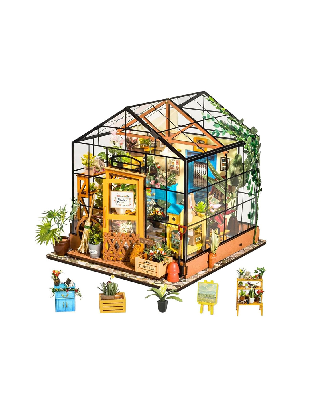 Adéntrate en el encantador mundo de la Casa de Flores de Cathy, un invernadero en miniatura de bricolaje perfecto para la temporada navideña. Ofrece una experiencia de manualidades encantadora. Esta casa en miniatura de cuatro paredes transparentes te brinda no solo una estructura bellamente detallada para ensamblar, sino también un espacio acogedor donde puedes sumergirte en la creatividad.