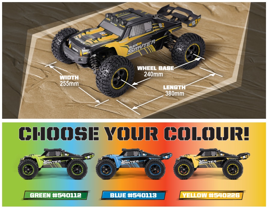 Esta marca se caracteriza por tener unos coches con una gran calidad y resistencia ideal para los pilotos que quieren iniciarse en el mundo del RC, pero la escala1/16 les resulta un poco pequeña, Blackzon ha sacado al mercado esta nueva gama 1/12 con estética Monster Truck, Desert Truck y Desert Buggy.